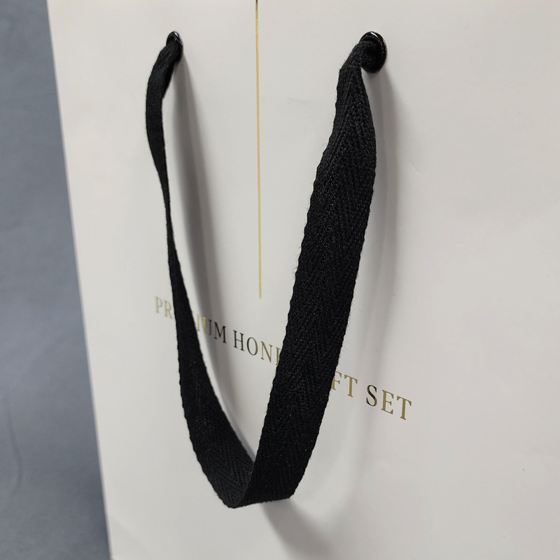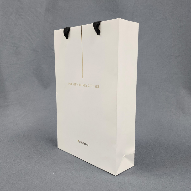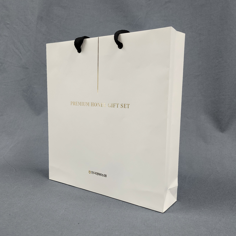 우리 고객께서는 박스 디자인에 썼던 먹1도와 금박이란 디자인 일체성을 쇼핑백 디자인에도 그대로 갖고 왔습니다.