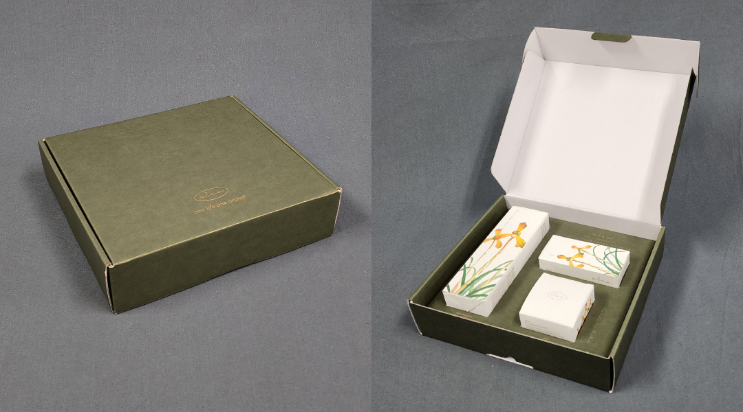 여러 크기의 화장품 세트를 적절히 배치하여 상품과 포장의 가치를 올린 사례를 소개해 드립니다.
