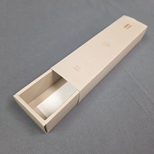 후면의 따뜻한 미색 느낌과 자연스러운 비코팅 질감으로 내추럴한 박스를 만들 수 있었습니다.