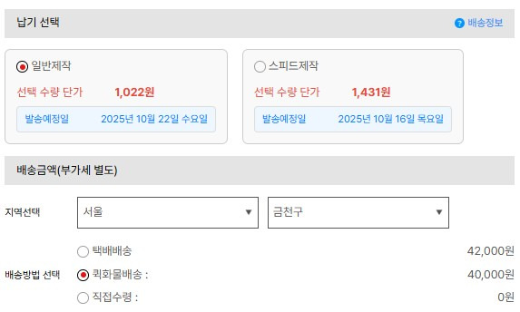 납기일은 일반제작과 스피드제작 2가지 중 선택 가능합니다.