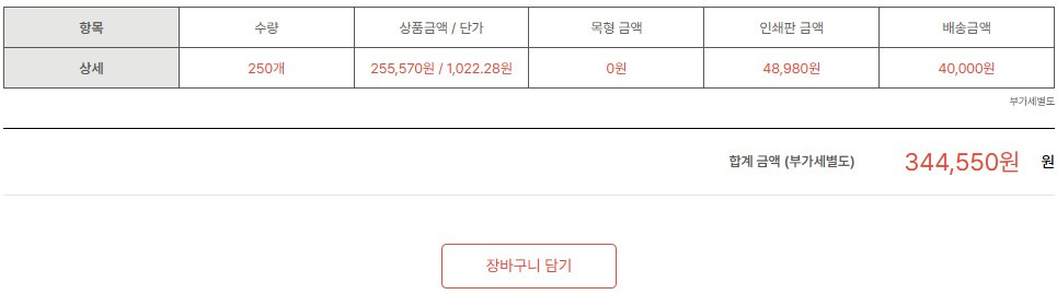 인쇄옵션 밑으로 인쇄 박스제작을 위한 최소수량이 표시됩니다.