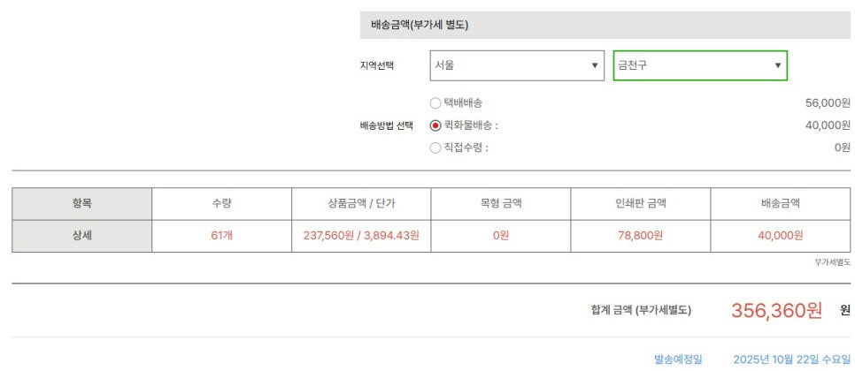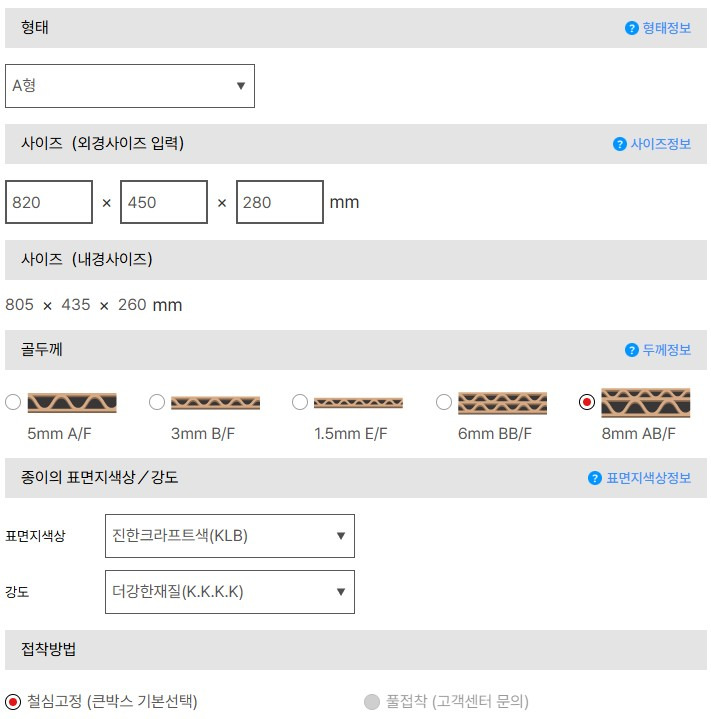 얼마 전 제작한 대형박스 사례로 설명드립니다.