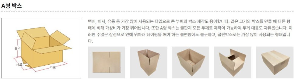 이 A형 박스는 아래 위 테이핑으로 마감하는