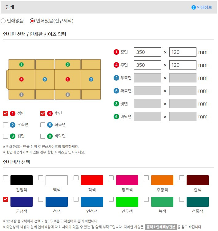 군청색으로 인쇄하고자 할 때의 입력내용입니다.